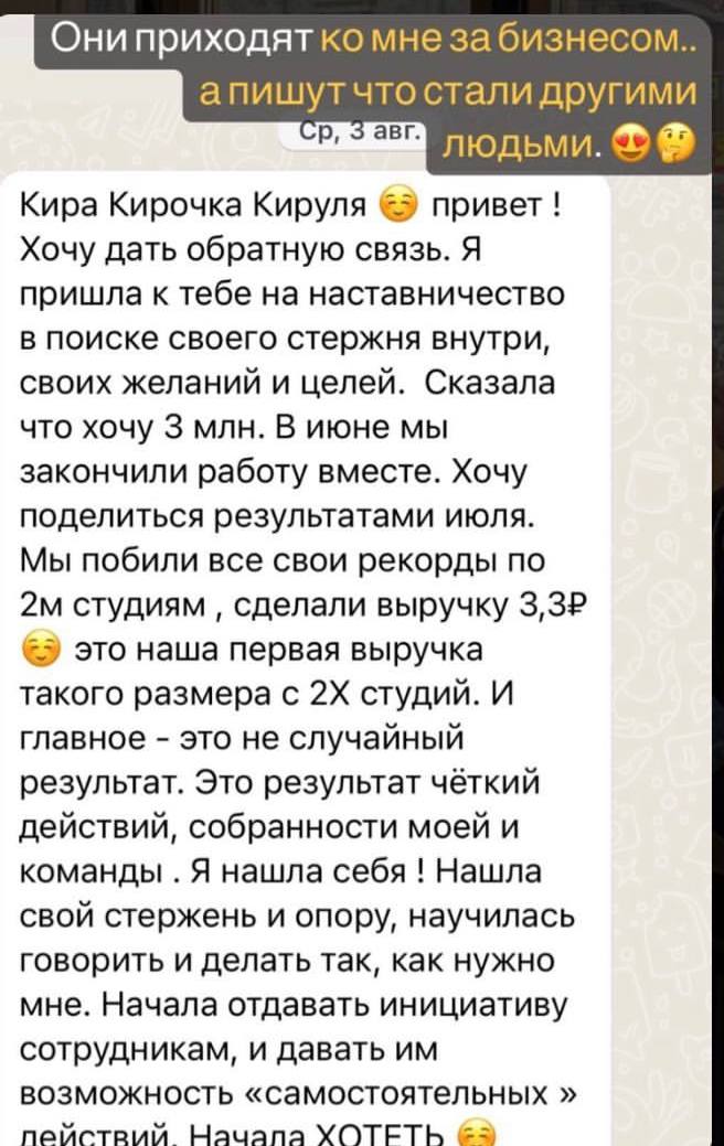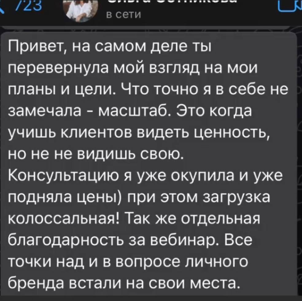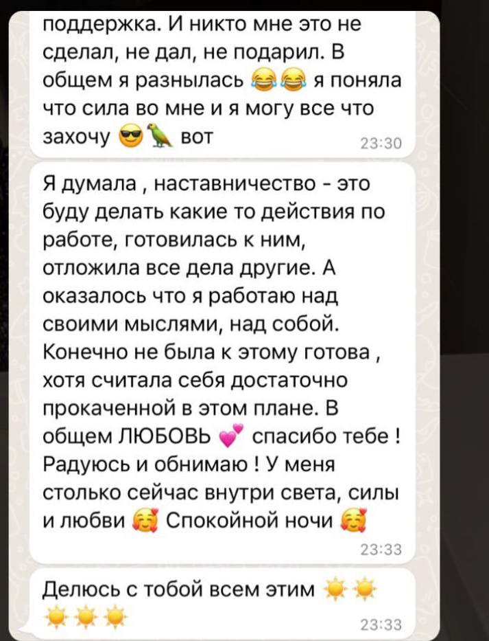 После бизнес мышления — я даю решение. Люди уходят с ответами, как пошагово действовать для результата.